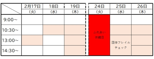 現在の予約状況(2月17日~26日)