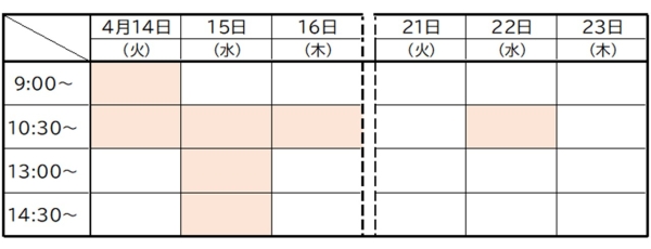 現在の予約状況(4月7日~16日)
